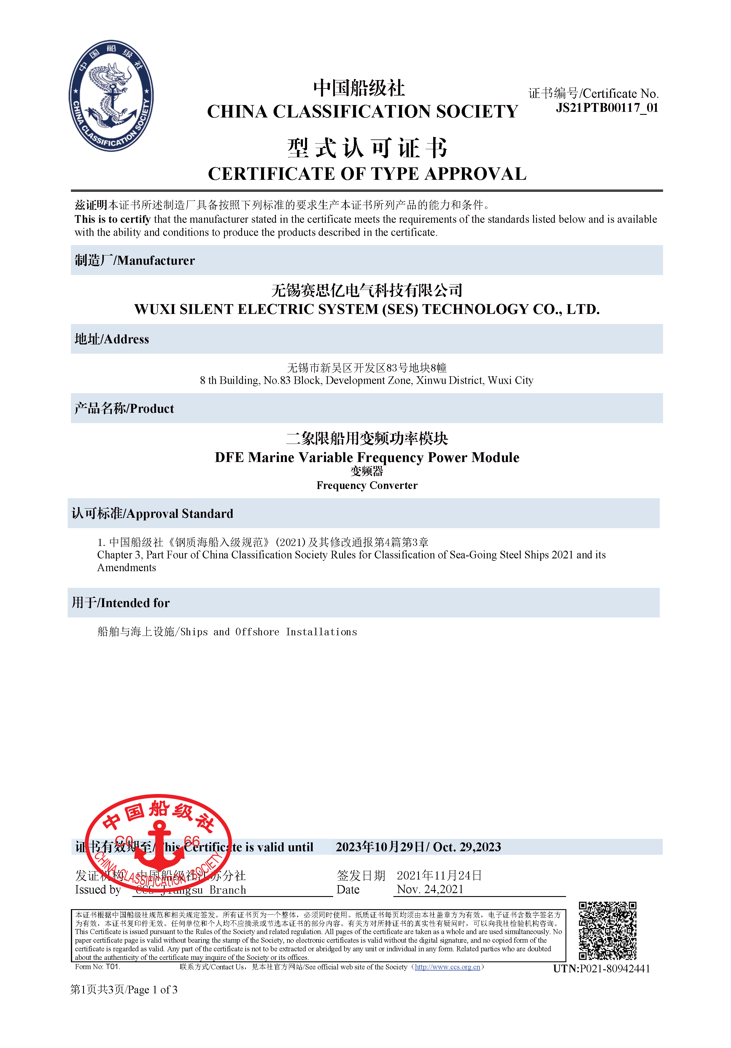 二象限變頻功率模塊型式認(rèn)可(CCS)