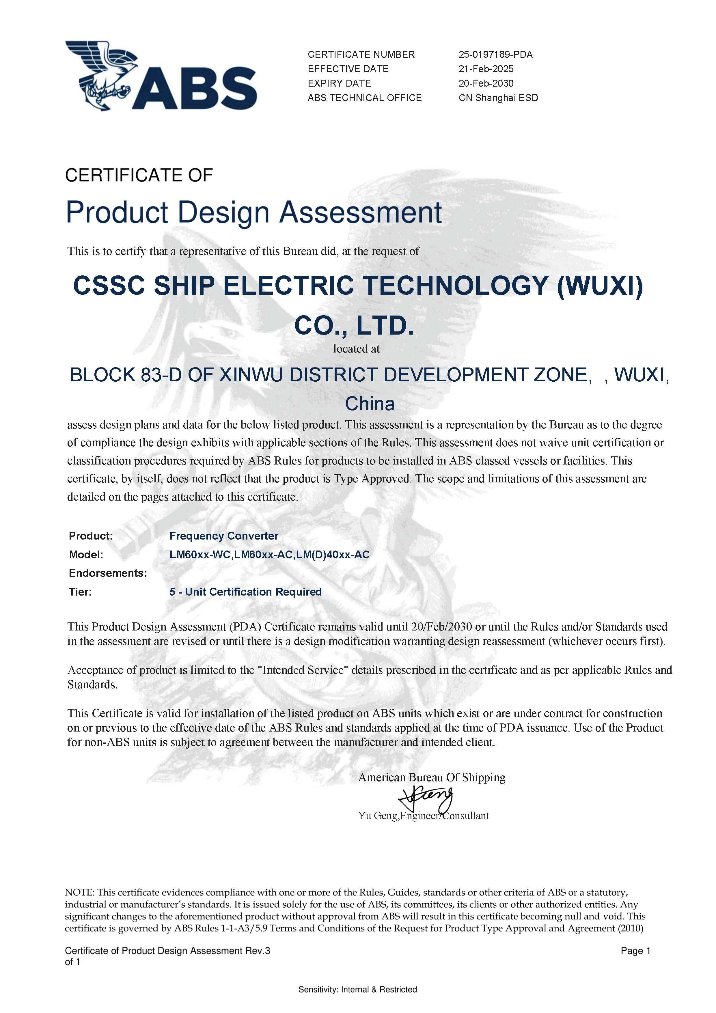 低壓船用核心功率模塊系列產(chǎn)品獲得了中國(guó)船級(jí)社、法國(guó)船級(jí)社、挪威船級(jí)社等主流船級(jí)社的型式認(rèn)可,