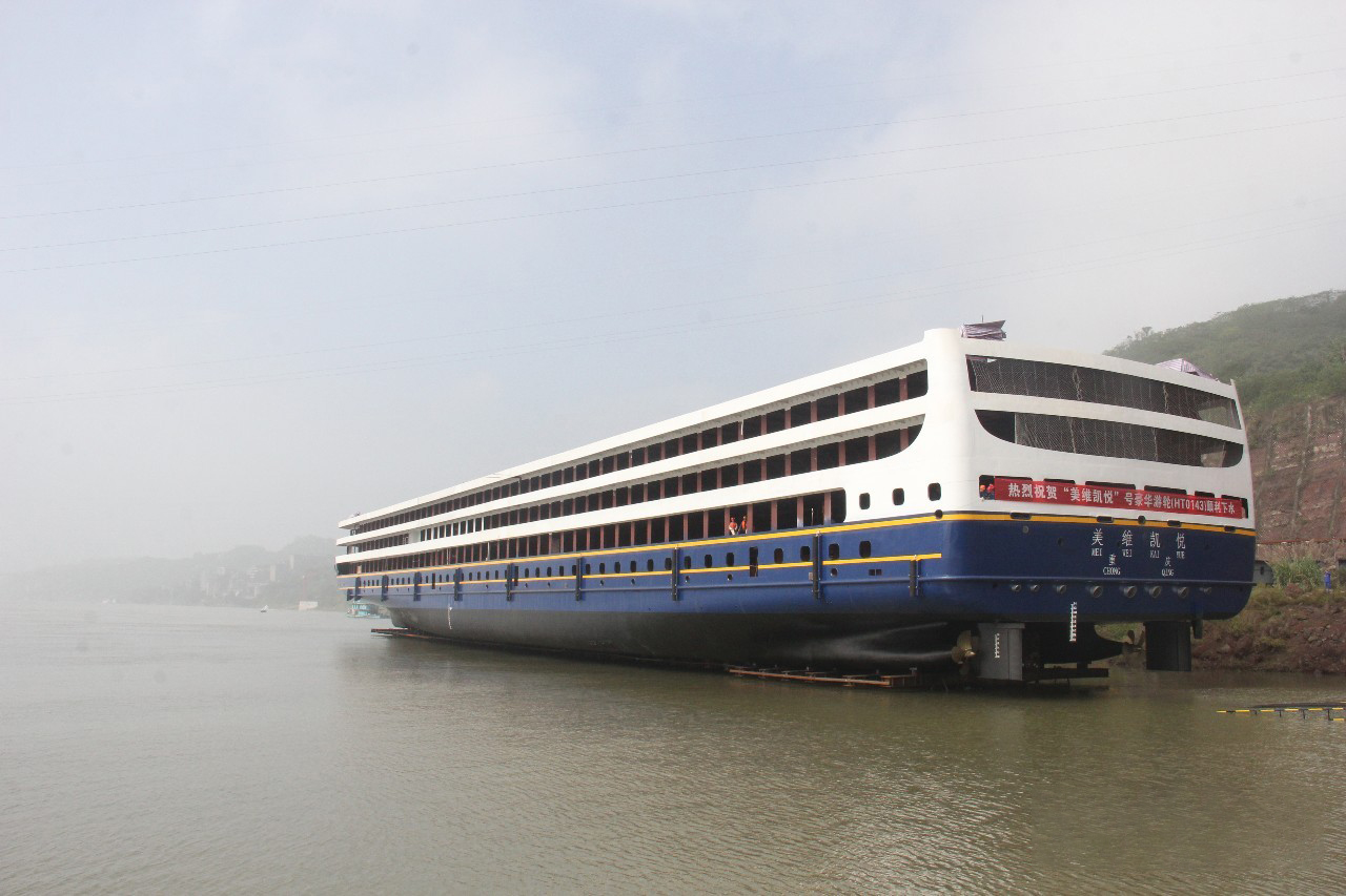 “美維凱悅”游輪總長149.99米,,型寬21.8米,型深4.5米,設計吃水2.9米,為鋼質、雙尾、前傾首柱、雙槳、雙舵、雙電機驅動的游輪,建成后將是中國內河最大游船,主要用于接待國內外賓客游覽長江三峽,是長江干線重慶至上海移動的五星級水上酒店,“美維凱悅”同樣采用賽思億直流組網電力推進系統(tǒng),整船裝機容量5MW,直流組網技術的應用在為游客帶來更安靜、舒適的游覽體驗的同時,大大優(yōu)化了柴油機組運行工況,明顯改善船舶氣體排放問題。