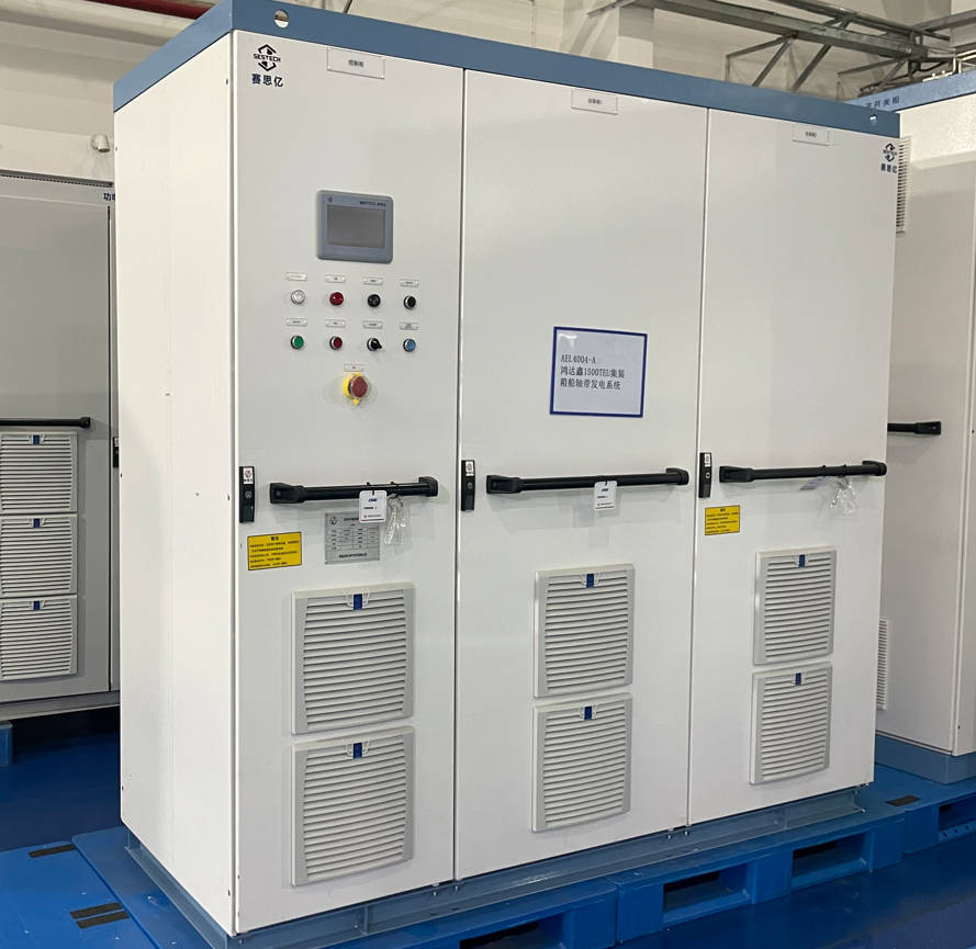 由浙江洲潤海運有限責(zé)任公司出資建造的1815TEU集裝箱船,采用賽思億S-Shaft軸帶發(fā)電系統(tǒng),配置一臺630kW的軸帶永磁低速電機及800kW側(cè)推系統(tǒng),核心變頻電控設(shè)備采用賽思億自主知識產(chǎn)權(quán)產(chǎn)品。目前順利通過中國船級社江蘇分社檢驗,發(fā)往中船電機進(jìn)行陸上聯(lián)調(diào)。