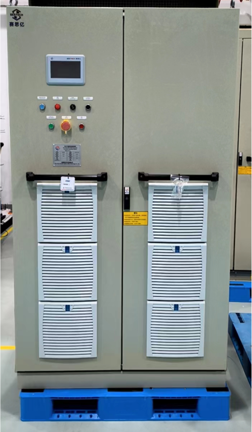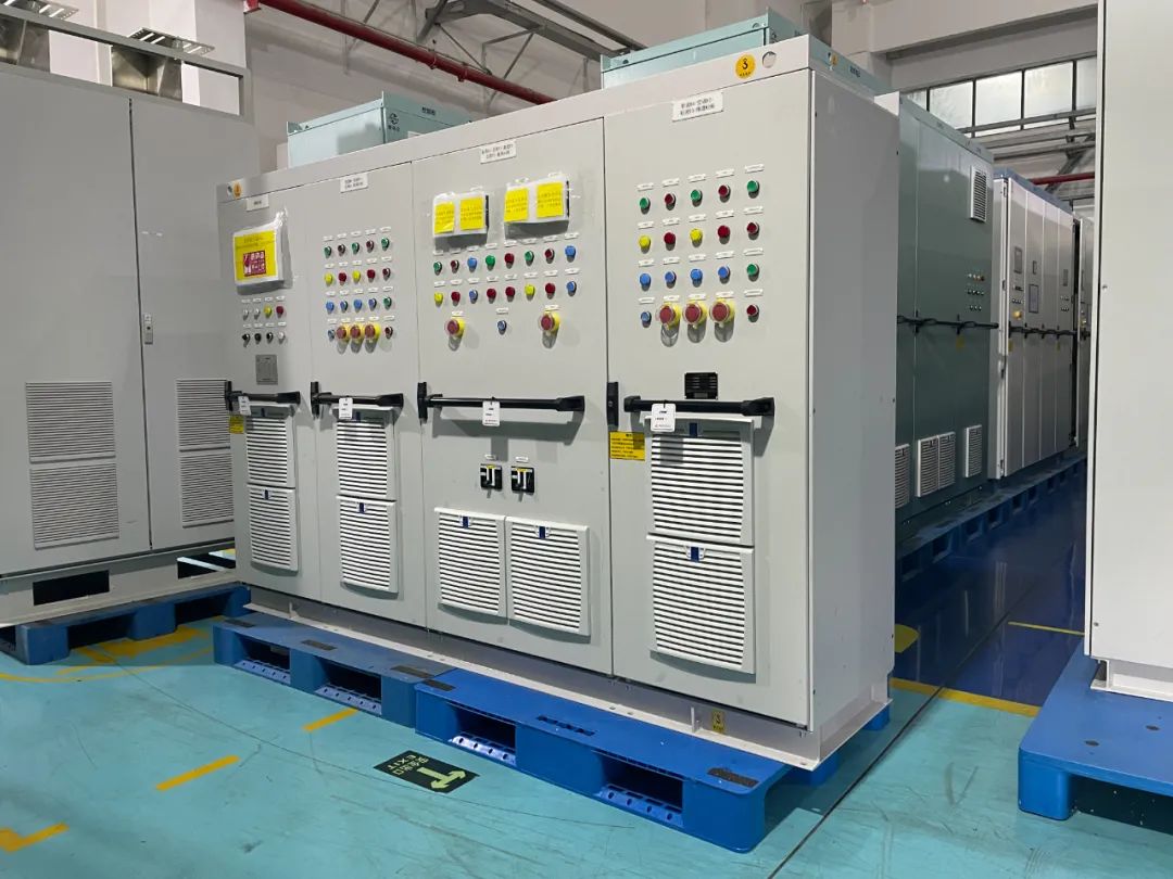 該船動力來源為常規(guī)柴油推進(jìn)主機(jī),系統(tǒng)配置一臺350kW的軸帶發(fā)電機(jī),軸帶電機(jī)通過齒輪箱與主機(jī)自由端相連接,確保主機(jī)在正常使用轉(zhuǎn)速范圍內(nèi),系統(tǒng)能夠發(fā)出足夠的功率,供應(yīng)全船負(fù)荷。目前變頻電控設(shè)備已發(fā)至客戶指定地點(diǎn)。