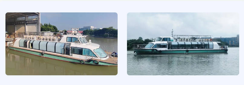 三江兩岸水上黃金旅游線一期4艘新造船項目目前陸續(xù)試航成功,賽思億動力系統(tǒng)各項功能通過試航考驗,目前,“江蘆號”、“江翠號”、“江薇號”、“江雪號”已陸續(xù)開往杭州,為即將到來的杭州亞運會服務!作為錢塘江水域目前載客量最大的批量新能源客船,將為“三江兩岸”帶來更多元化、更高品質(zhì)的水上游船服務,為亞運會各方游客帶來綠色靜音服務。