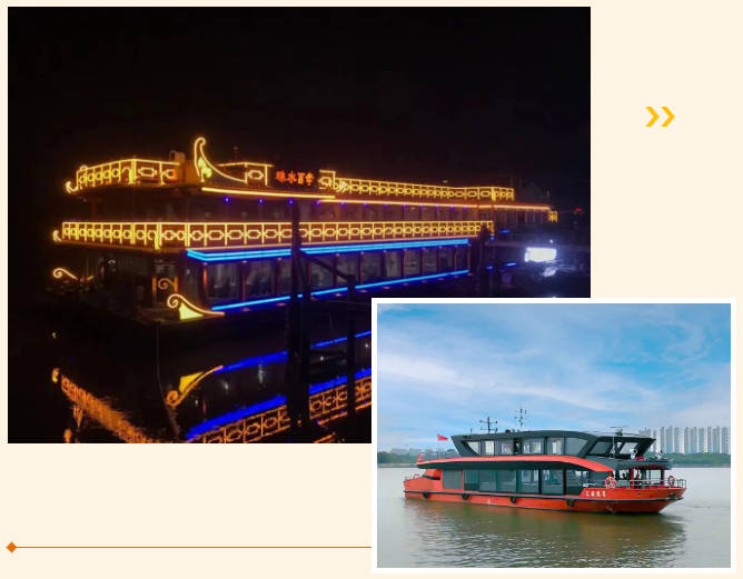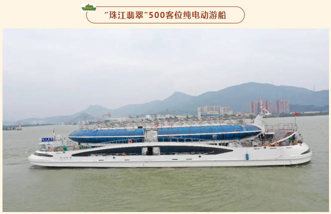珠江流域電池容量最大的廣州港500客位純電動(dòng)游船“珠江翡翠”,由廣州港下屬廣州金航游輪股份有限公司出資、江龍船艇科技股份有限公司建造,是一艘主要航行于廣州珠江水域的珠江夜游船,具有觀光游覽、接待、商務(wù)、慶典等綜合功能。