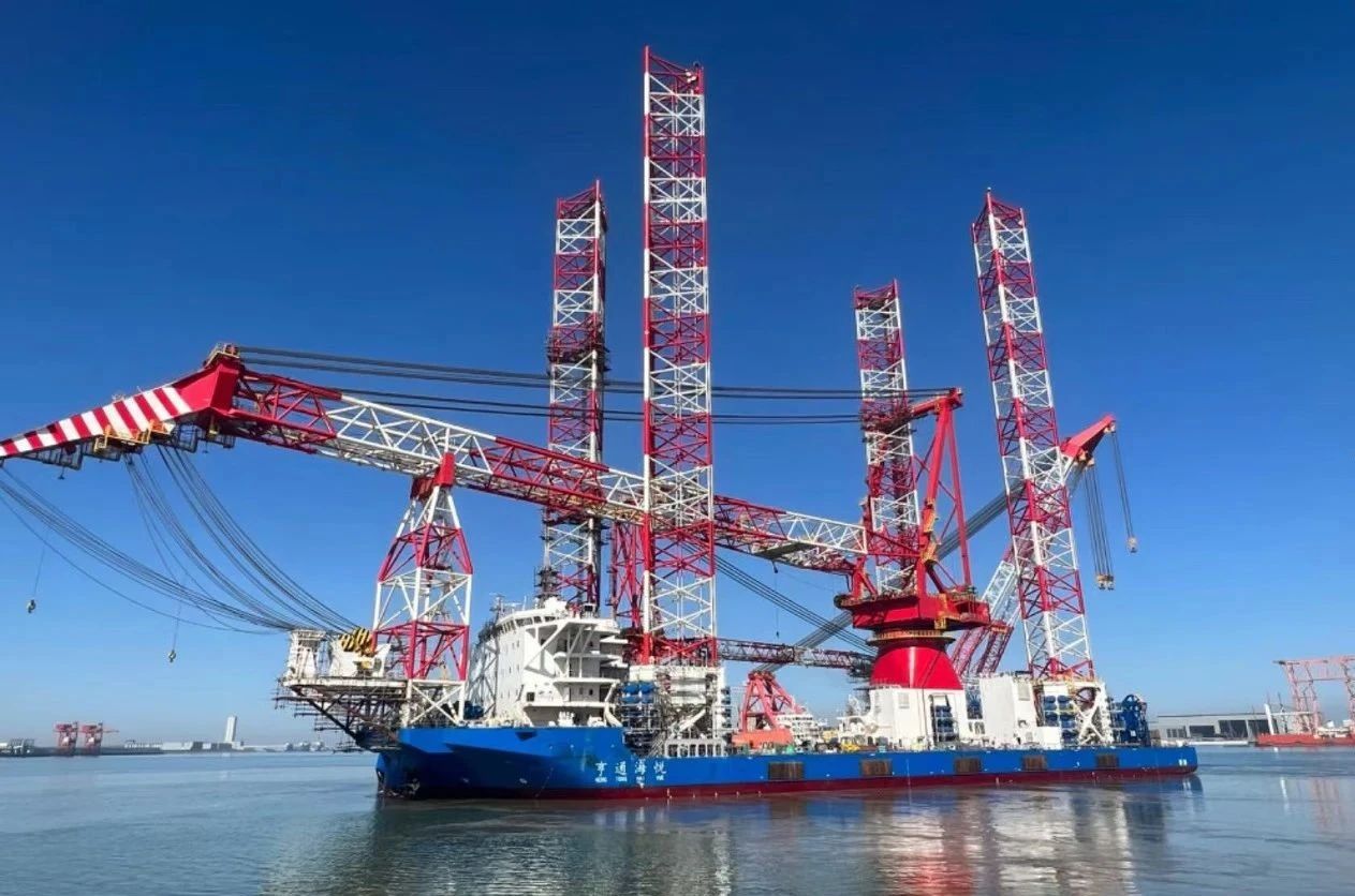 由亨通集團(tuán)投資、上海佳豪設(shè)計、江蘇大津重工建造,搭載中船賽思億全套電力推進(jìn)系統(tǒng)總成的1600T大型深遠(yuǎn)海風(fēng)電安裝平臺“亨通海悅”近日在大唐海南儋州120萬千瓦海上風(fēng)電項目投入使用并成功安裝了12臺海上風(fēng)機,順利完成首秀。