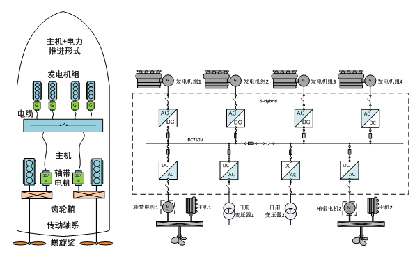 相比于主機(jī)推進(jìn)和電力推進(jìn)船舶,S-Hybrid主機(jī)+電力推進(jìn)混合動力綜合解決方案具有以下優(yōu)勢: