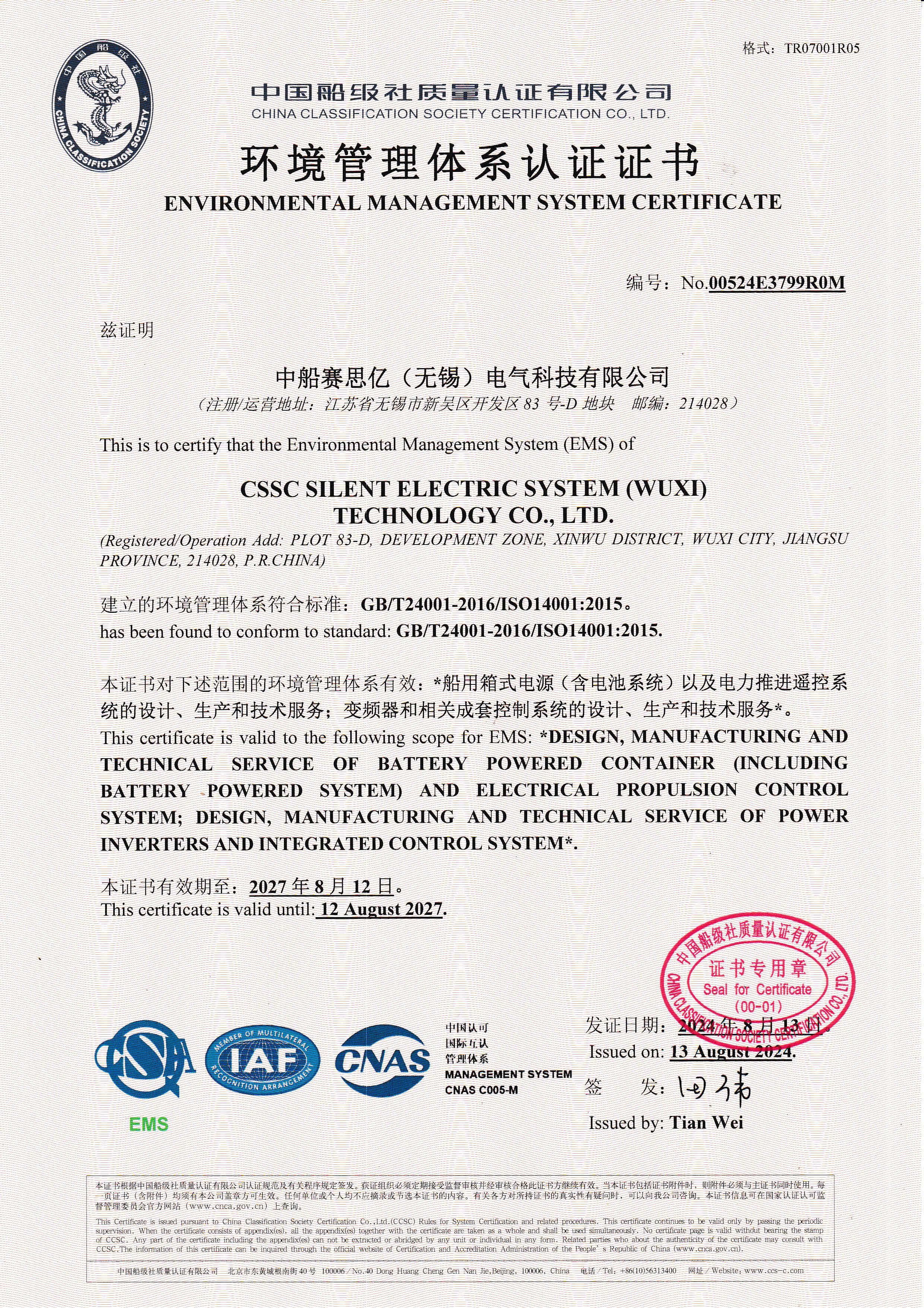 環(huán)境管理體系認(rèn)證證書(shū)
