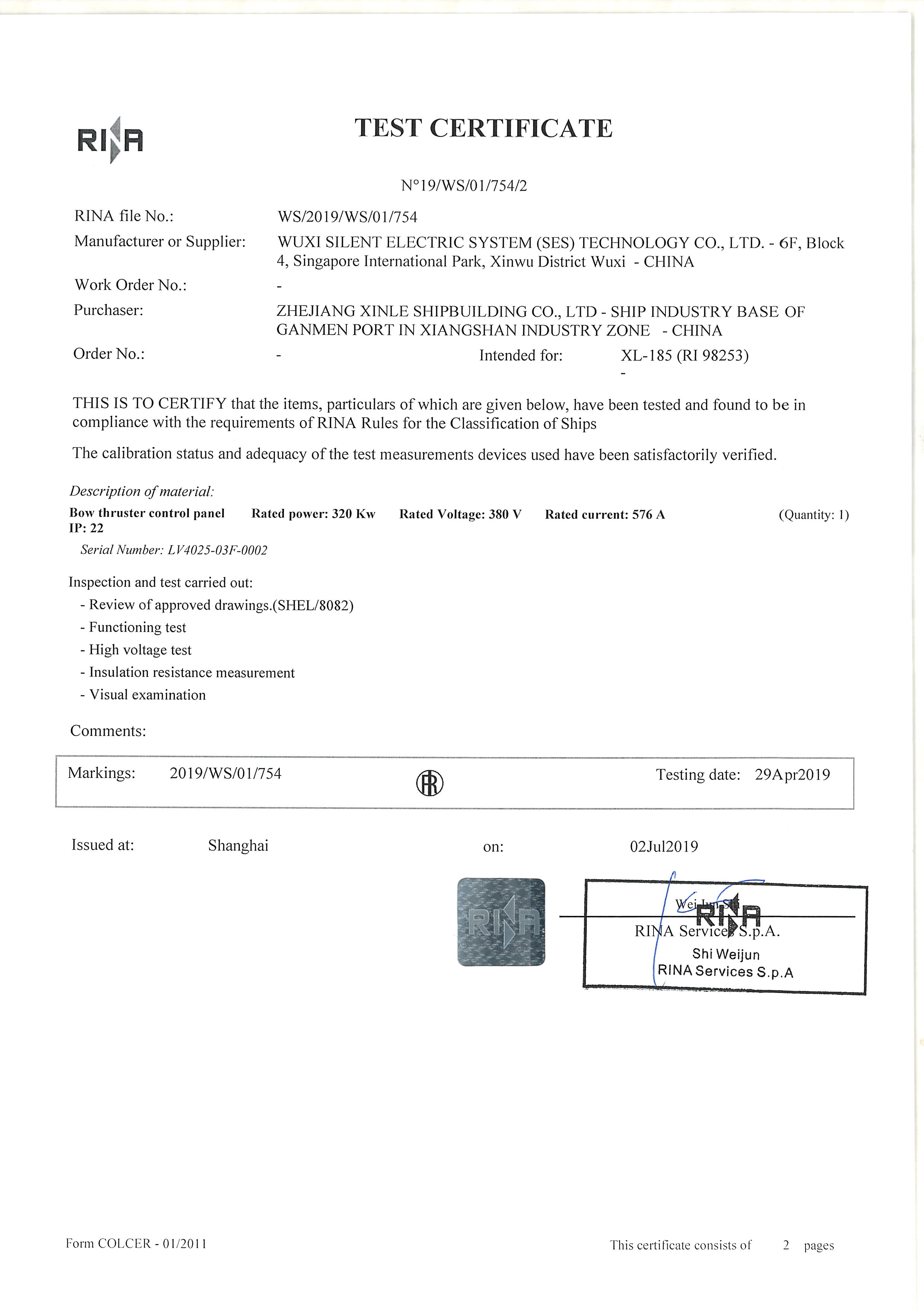 2020年04月10日上午,由浙江新樂(lè)造船股份有限公司為瑞士Nova Marine Carriers公司建造,裝備了賽思億艏側(cè)推國(guó)產(chǎn)推進(jìn)變頻電控設(shè)備和艏側(cè)推電機(jī)的6000噸雜貨船1號(hào)船“野牛”輪離開(kāi)公司碼頭前往寧波北侖大榭交船,該船舶的側(cè)推進(jìn)系統(tǒng)由無(wú)錫瑞風(fēng)船用推進(jìn)器有限公司集成。